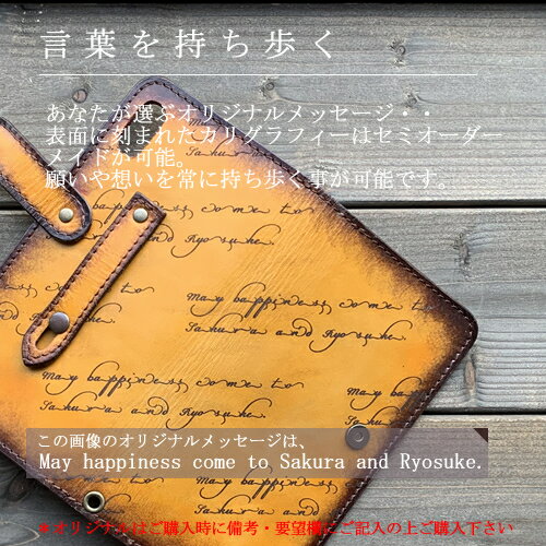--- 本革を楽しんで頂く為の注意 --- 商品特徴 完全ハンドメイドで製作する、手染めとオリジナルメッセージ刻印が印象的な全機種対応アンティーク本革手帳型ケース。
