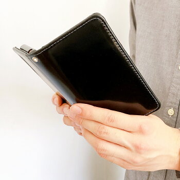 馬 本革 コードバン 手帳型ケース(内側:黒TPU ケース)★
